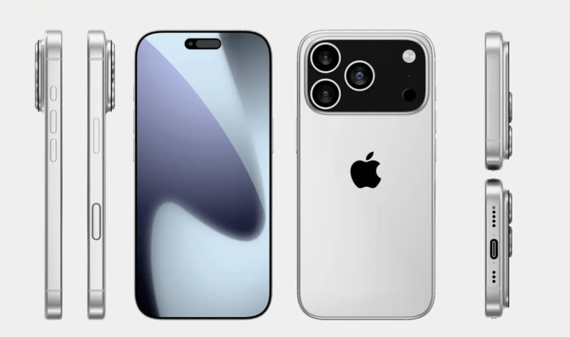 Pro and Pro Max may bring a refreshed aesthetic: an aluminium + glass rear, rectangular horizontally‑oriented camera bar, and centre‑lowered Apple logo to accommodate it. Rumours also hint at anti‑reflective tougher glass too.