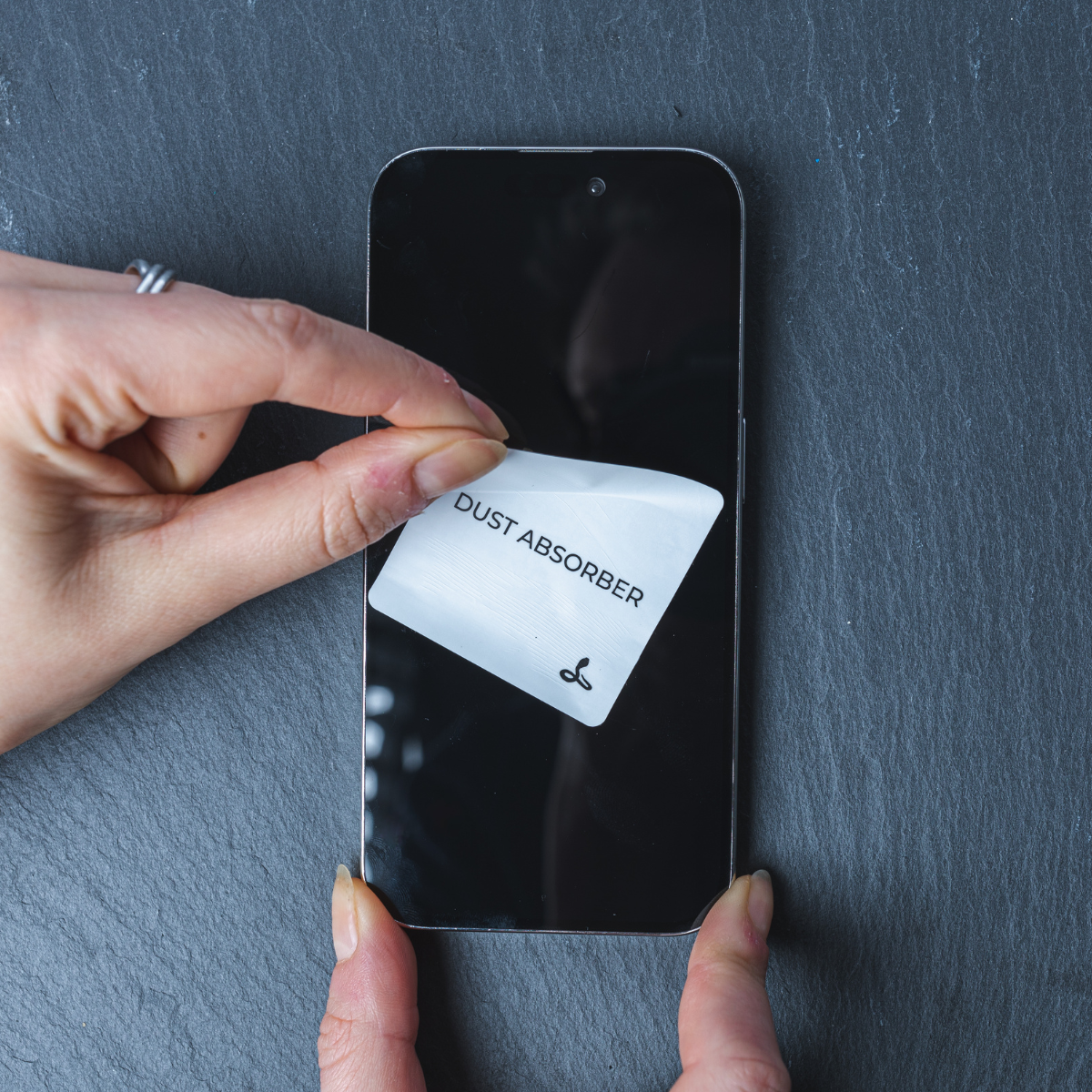 Blot the screen with the Dust Absorber to remove any dust particles.
