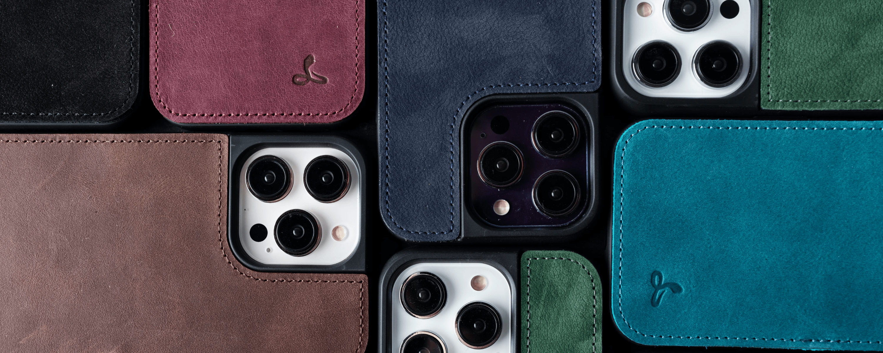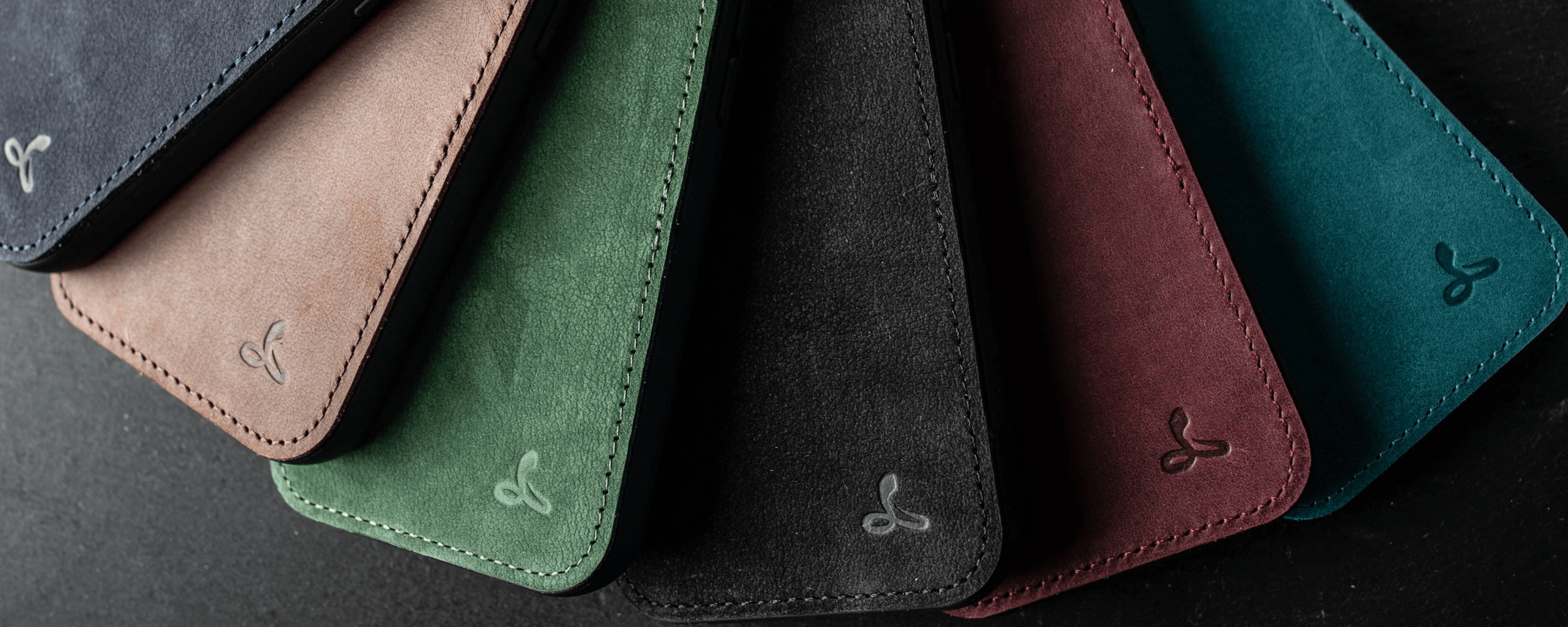 Every case is handmade in the UK and hand-dyed using carefully selected leather. Choose from soft matte nubuck finishes in Navy, Black, or Bottle Green, or opt for a glossier, full-grain texture in Chestnut Brown, Teal, or Plum.