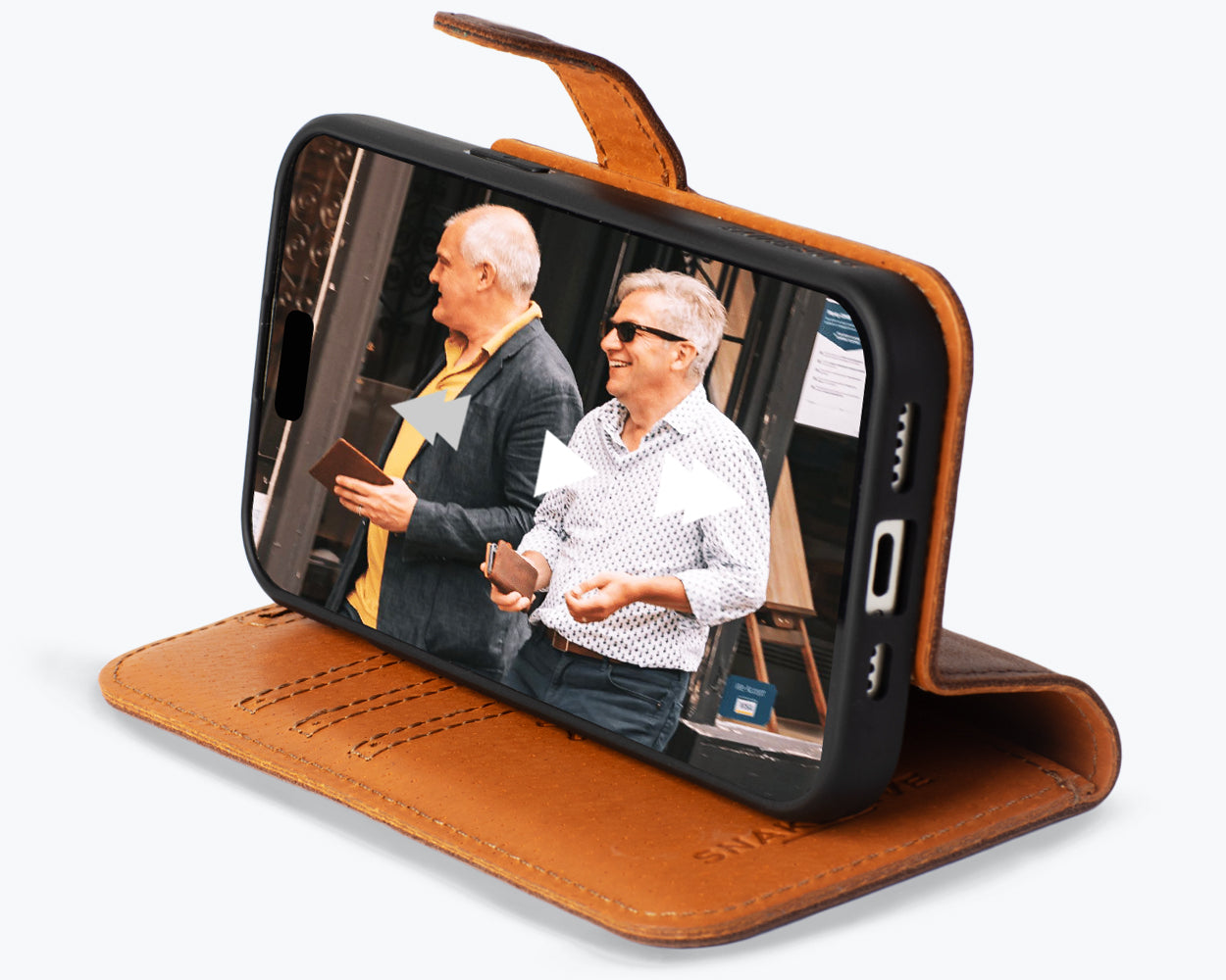 Designed to mirror the iPhone 15’s sleek curves and colour-infused glass back, our Vintage Wallet Case offers a tactile contrast with its soft leather – a material that ages beautifully, developing a patina that’s uniquely yours.